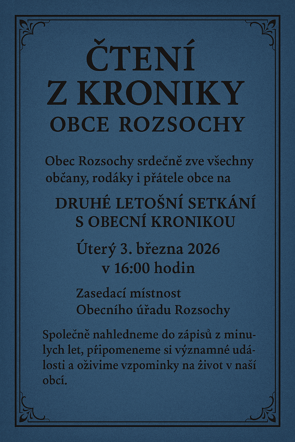 Seznam nemateriálních statků tradiční lidové kultury Kraje Vysočina v závěru roku 2025 rozšířila Ostatková zábava s pochováváním Masopusta v Rozsochách. Tradiční masopustní obyčej se v obci na Bystřicku koná každoročně v úterý před Popeleční středou a v tomto původním liturgickém termínu na Vysočině dochoval pouze v této obci.
